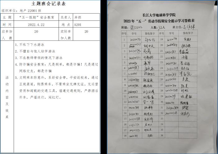 此次安全教育班会旨在提高全院学生的安全防护意识,外出期间,要提高警惕,在校学生也要遵守学校纪律,注意寝室用电安全和消防安全,希望大家度过一个安全、愉快假期。